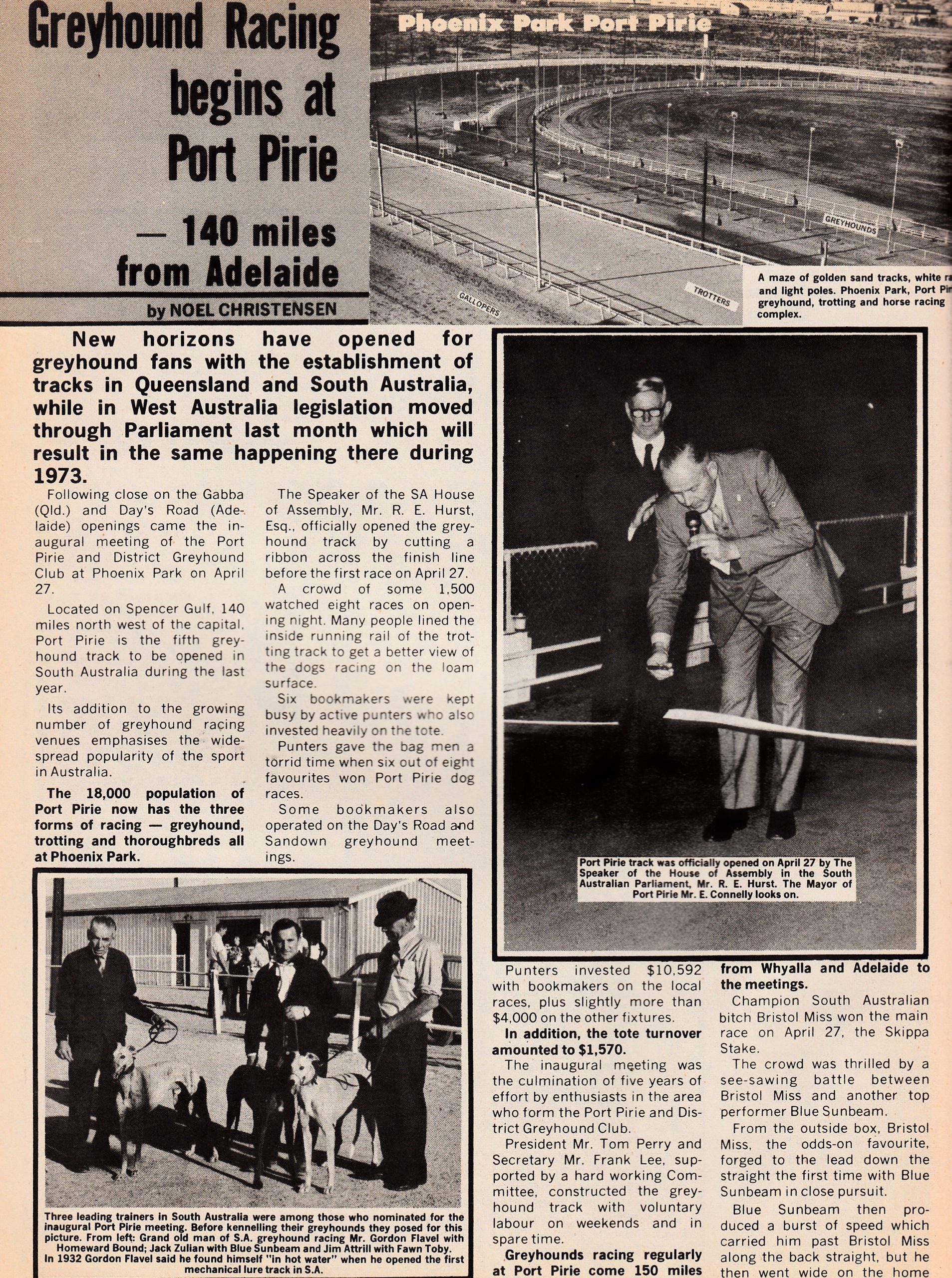 Went to Port Pirie a couple of times in the early 70’s pretty sure it looked the same as it does here in the 90’s. Two things have stuck in my mind ever since. It was the first time I had ever been into a Betting Shop complete with saw dust on the timber floor. Plus, I had never tasted Whiting as good caught fresh that day. Photo’s from opening night in 1972.