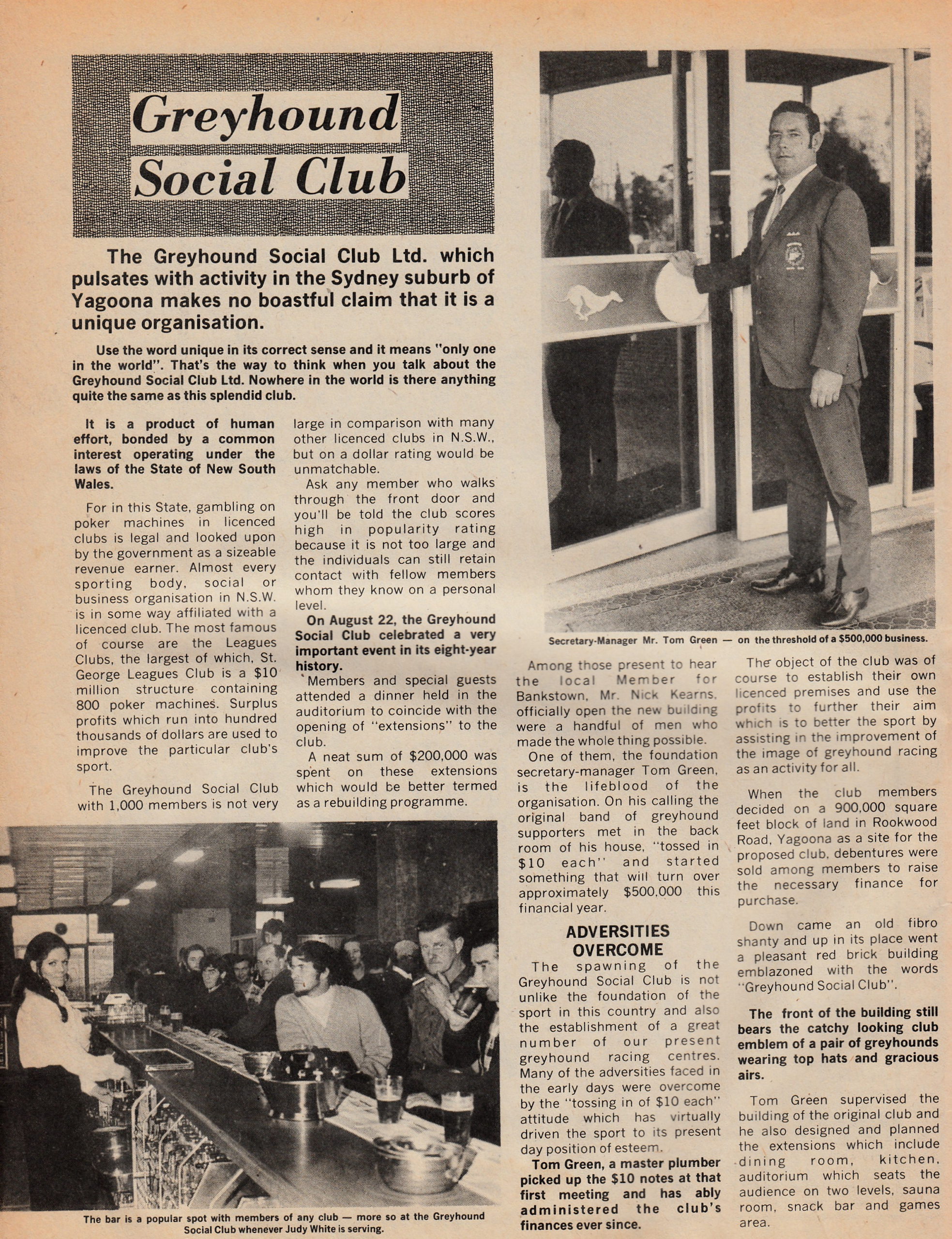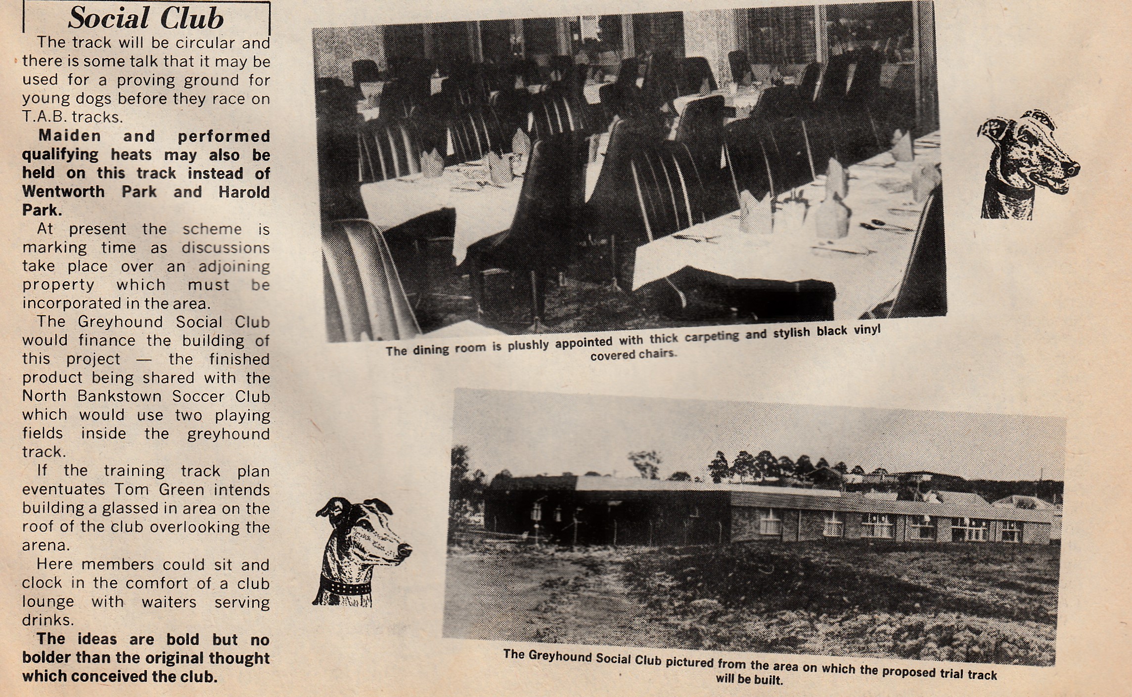 One of my favorite places to go in Sydney is Potts Park on a Saturday afternoon. I have attended many times with my mate Ron Arnold. Love it, here is when it got underway as the Greyhound Social Club and trial track for many years.