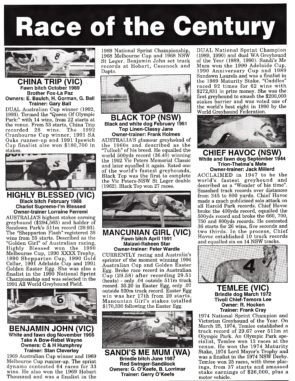 In May 1994 the Australian Greyhound Monthly ran this unique competition for readers. I not sure of the outcome but I love the records and the stats of the eight they had in the final.