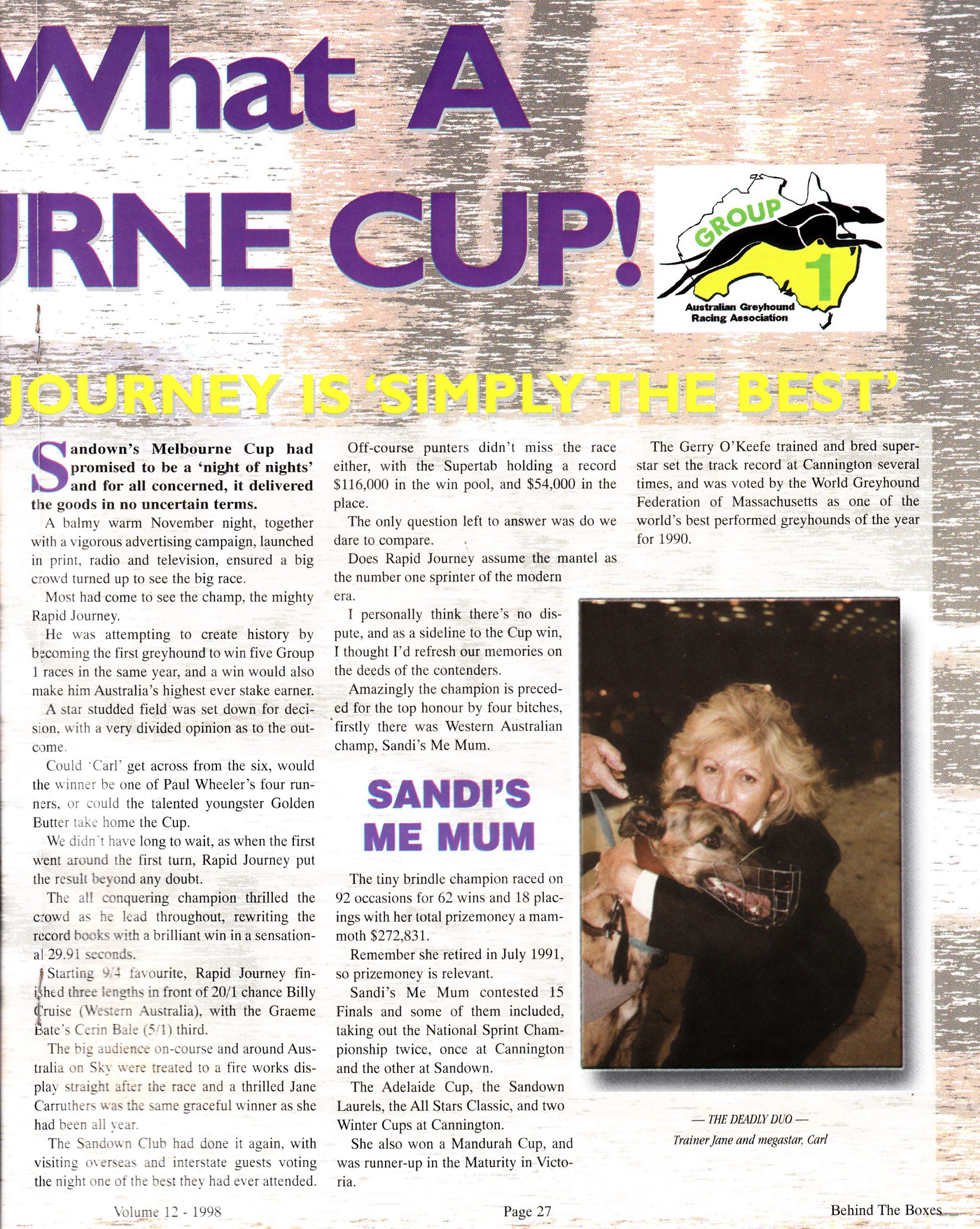 A favourite photo of mine the mighty Rapid Journey winning the Top Gun and Melbourne Cup at Sandown. Runner-up Reggie. Also Rapid Journey after winning the Easter Egg.