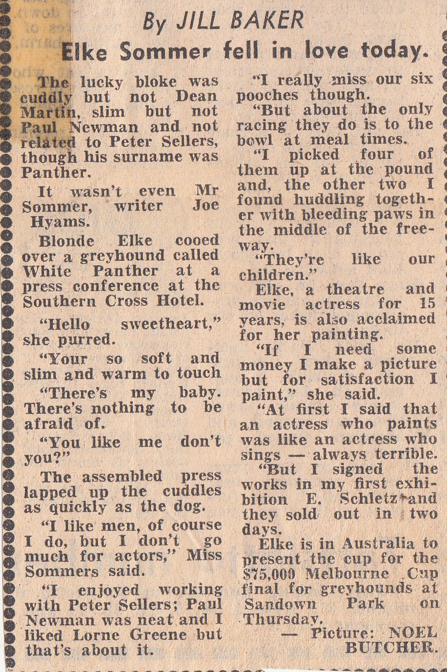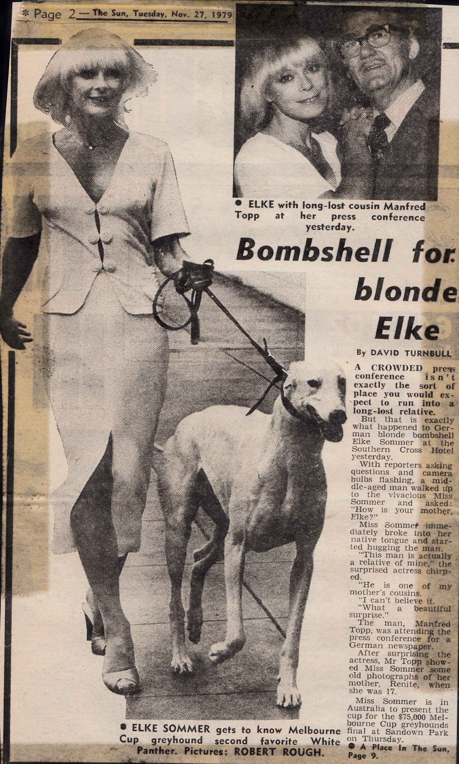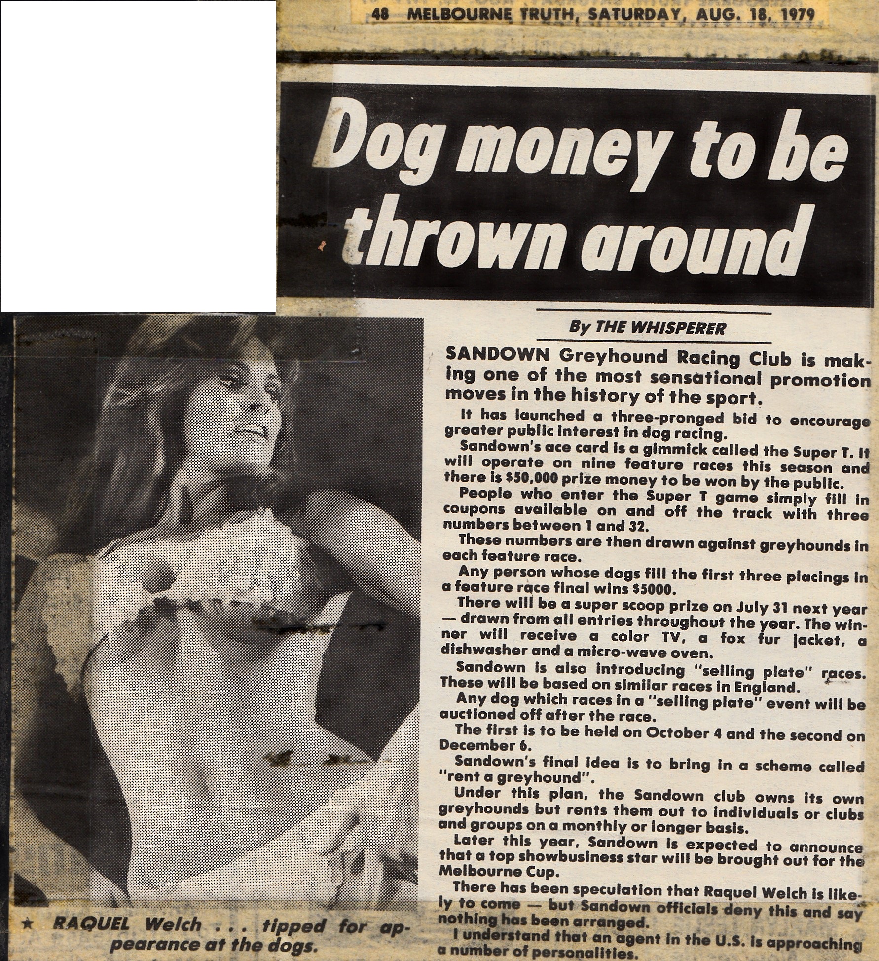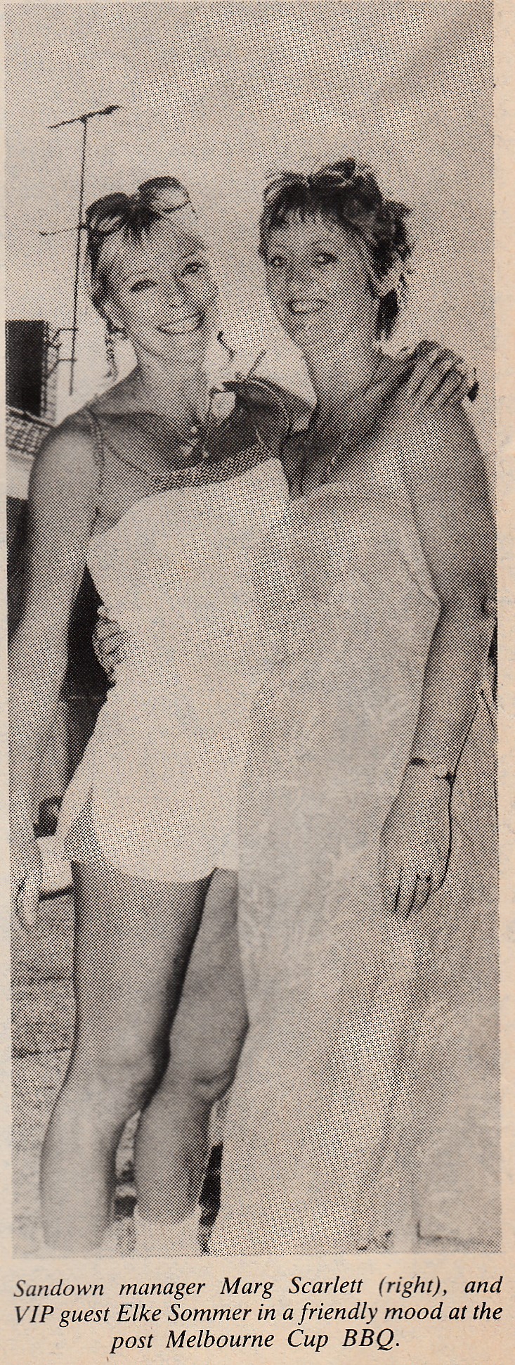 After all these years it appears the vivacious Elke Sommer wasn’t Sandown’s first choice of Hollywood movie star to promote the Melbourne Cup in 1979. It was none other than Raquel Welch. Regardless of the outcome it worked a treat as the front page of the Herald and other mainstream daily’s could get enough of the German born Star. Interesting to note the Herald was selling for 12 cents. Sadly, we lost Raquel Welch in February 2023 at age 82.