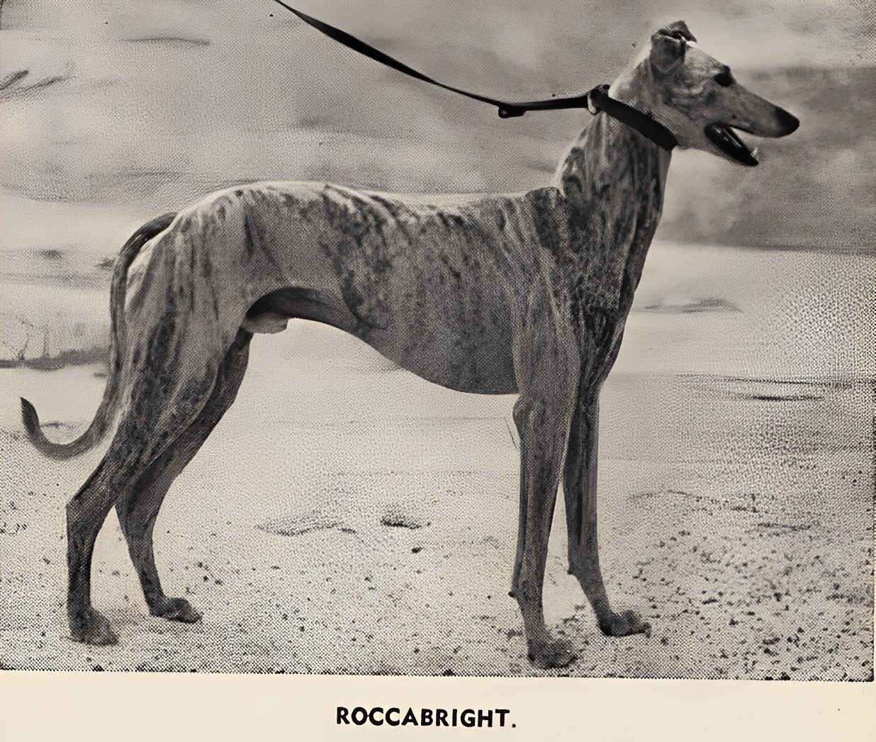Here is a great pic of Roccabright whelped in December 1937 he won 25 races starting with seven straight and he won first up on every track he raced on. Raced by the legendry Les Brett he named his famous Kellyville Kennels after Roccabright. They were later brought by Frank Holmes who stood the mighty Black Top there. Roccabright was a very successful stud dog he produced Nimble Rocca who in turn produced the mighty Dream’s Image. Prominent in the pedigree of the likes of Rookie Rebel. He is certainly a stunning looking individual.