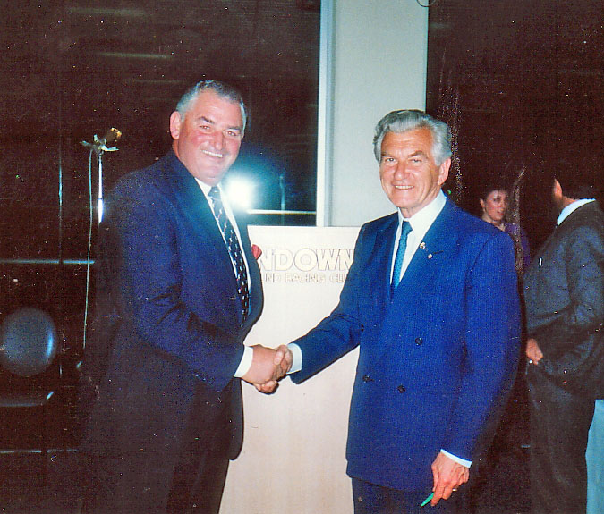 I thought I might put up a series of some photo’s Greyhound fans may not have seen for some time. Firstly, some famous people who have been to Sandown Park. Elke Sommer 79, Robert Stack 78 and the late Bob Hawke with Geoff Dawson.