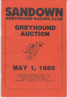 Anyone remember attending this Auction at Sandown. The race winner Lot 324. Raced as Super Gun 101 starts for 19 wins and 29 placings. $68,580 in stakes. 2nd in the 1990 Cranbourne Cup and 3rd in the 1990 Ballarat Cup.