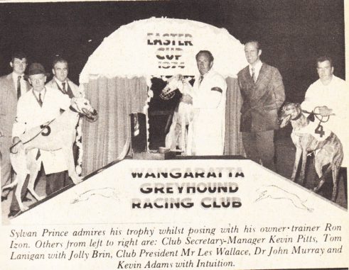 Sylvan Prince 1974 Wang Cup. By (Top Kabana x Merriette) won 33 races from 60 starts only raced for 33 months. Only dog to be graded behind scratch on Mechanical flat racing in Victoria. Slow beginner won most races last to first but had brilliant early pace from slips on the Coursing. As well as the Wang Cup he Won 1975 Waterloo Cup, 1973 Victorian Derby, 1974 Warragul Cup, 1975 Warrnambool Cup, two NCA Trophies and he also won at both Harold & Wentworth Park with a best winning time at Olympic Park of 30.31.
