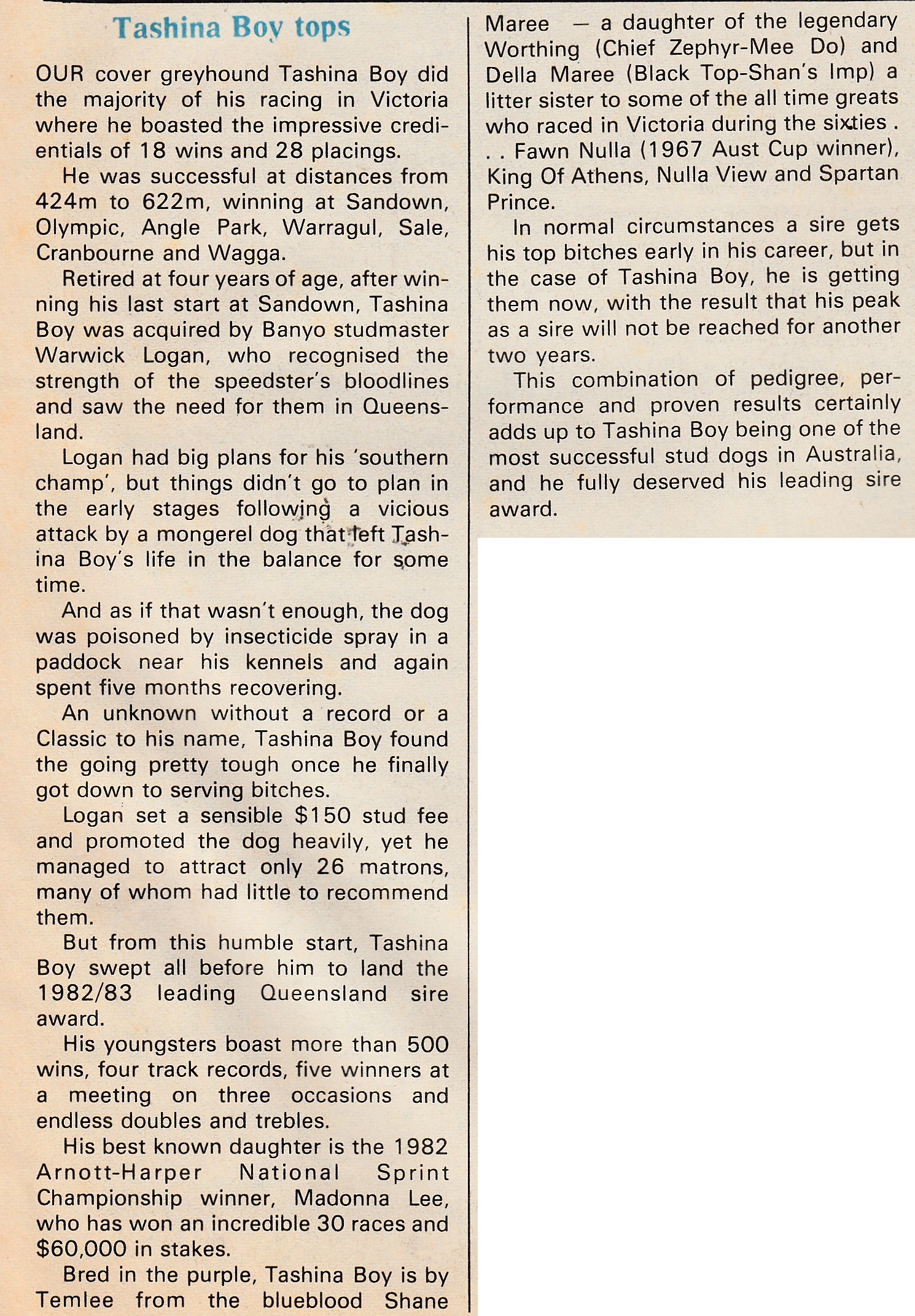 Top Queensland Sire Tashina Boy.
