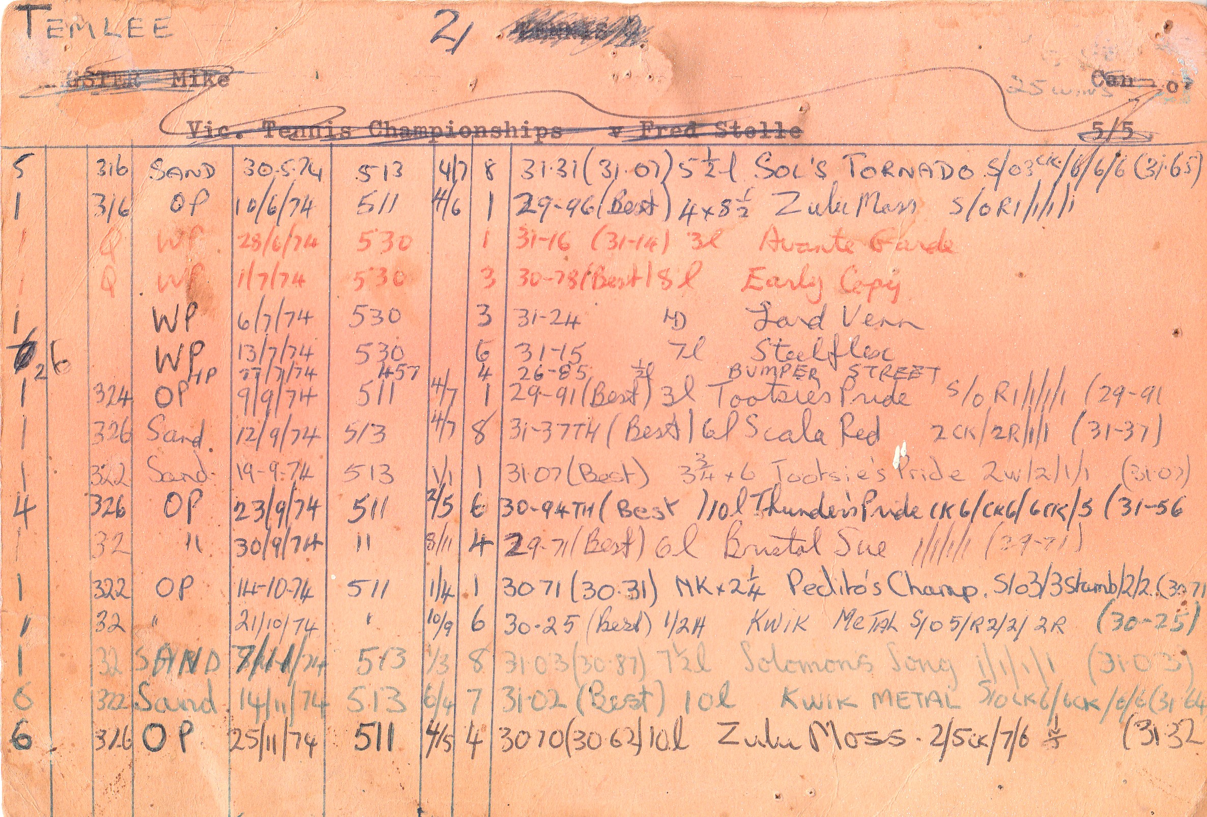 Leigh Smith – One of the best, that was around when we had the track at murphy’s. I thought the card might have been Wayne Kirbys, or the Pearsons. We filled the cards out all over victoria for the form guides.