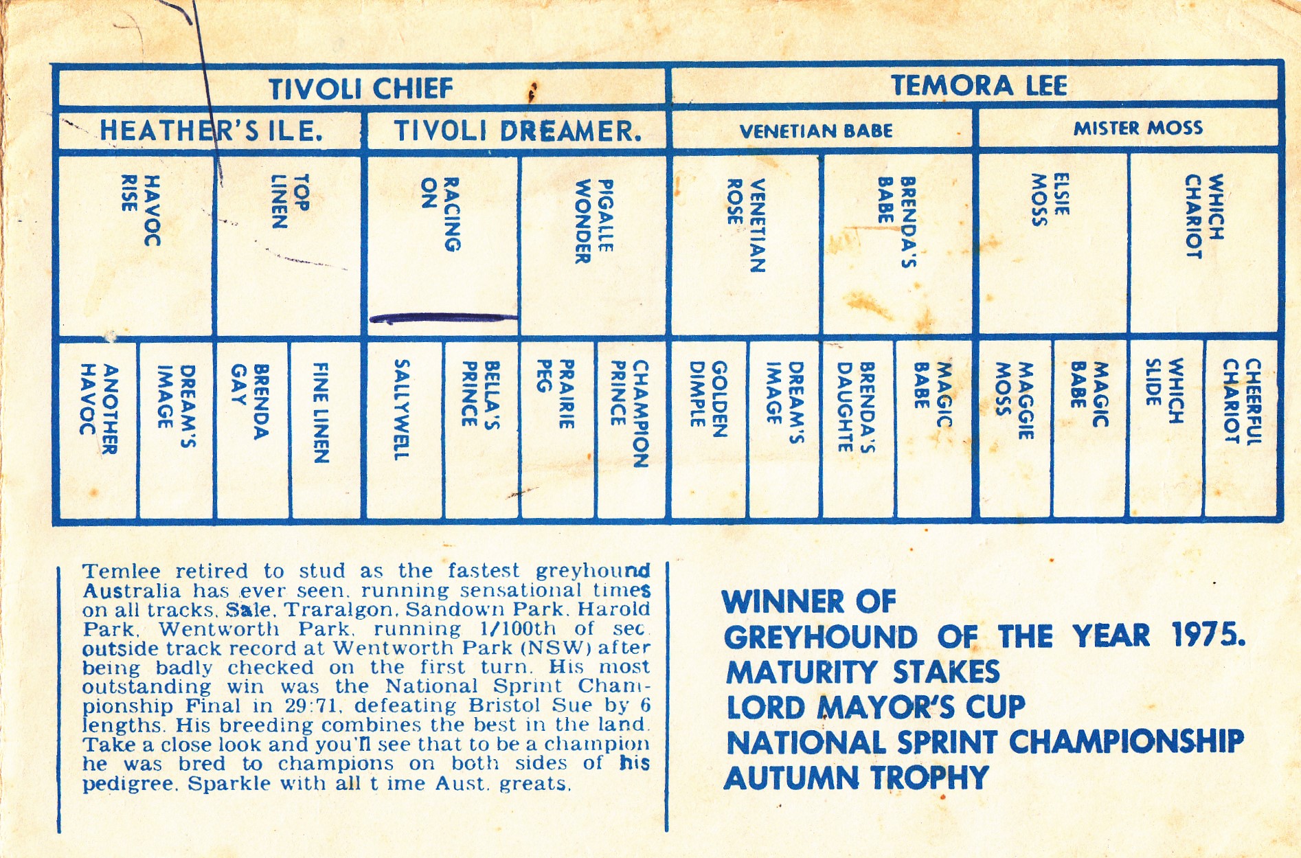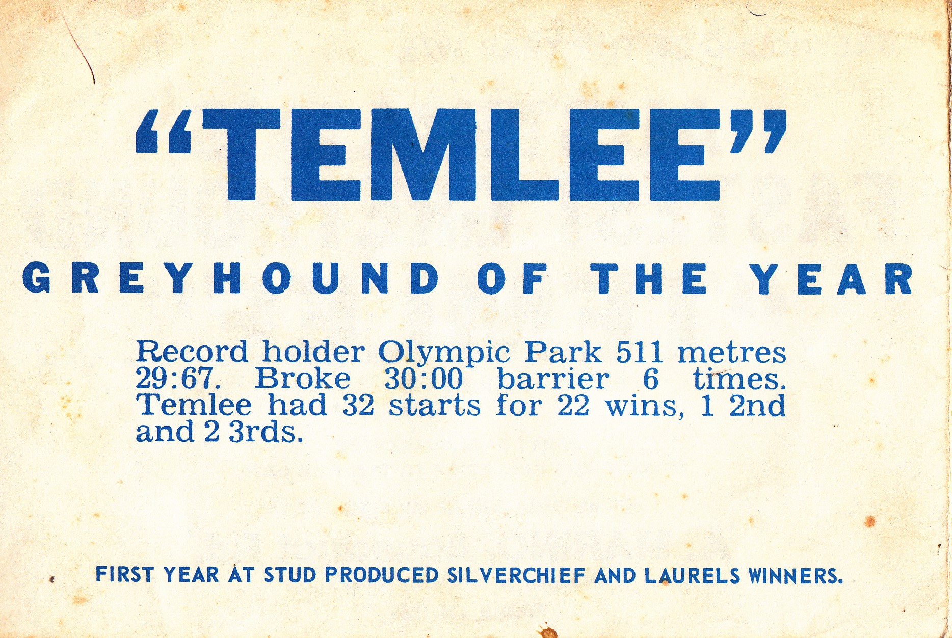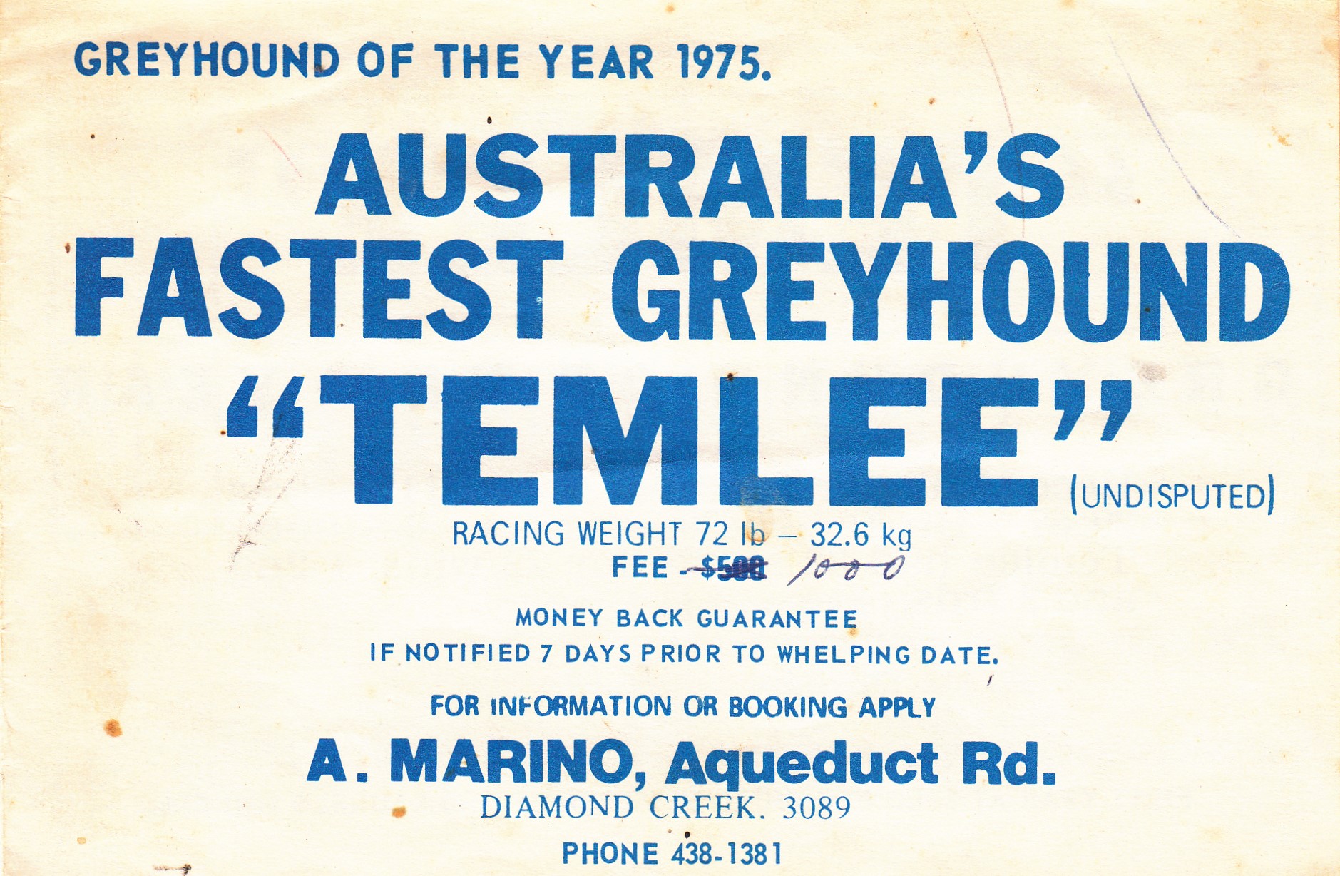 I knew I had these but couldn’t find them until today when I wasn’t looking for them they came to light. The card is Temlee’s original Race Form Card as filled out by the trainer Frank Cray. The other is an original Stud Card where he stood for the late Tony Marino in Diamond Creek. Notice he had gone from $500 to $1000. Both were given to me by the late Queensland Hall of Famer the lovely Beverley Behm. What a sensation he was I was lucky enough to see him race many times at Olympic Park and seven times at Sandown. He was also the Fernando Bale of his time at stud.