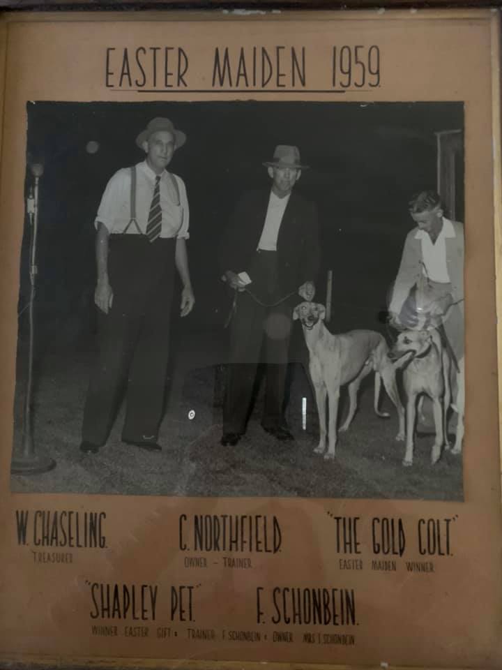 My grandfather Charles Northfield winning the Casino Easter Maiden 1959 With The Gold Colt.