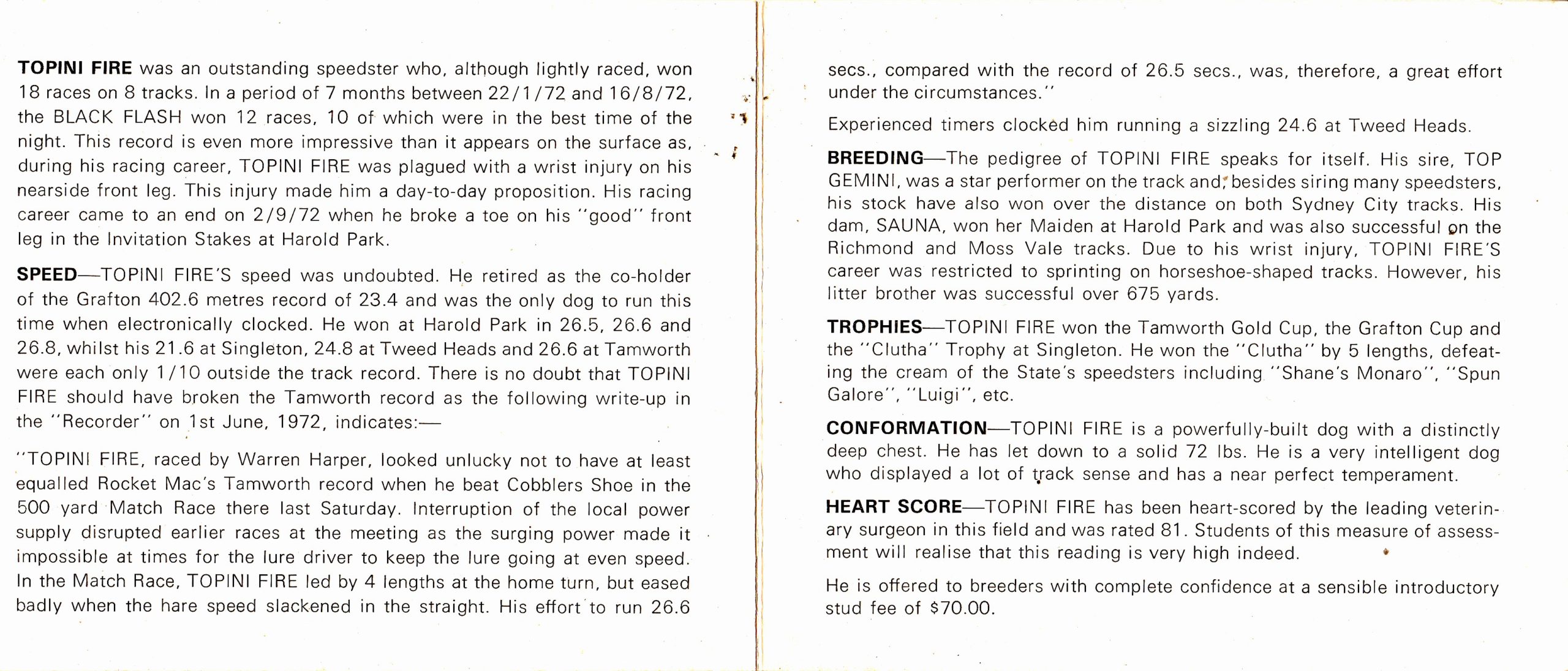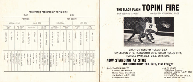 Topini Fire 21 May 2021 Neil Brown 60'S 0 Stud dog of the late 60’s Topini Fire, one of PA’S stud cards.