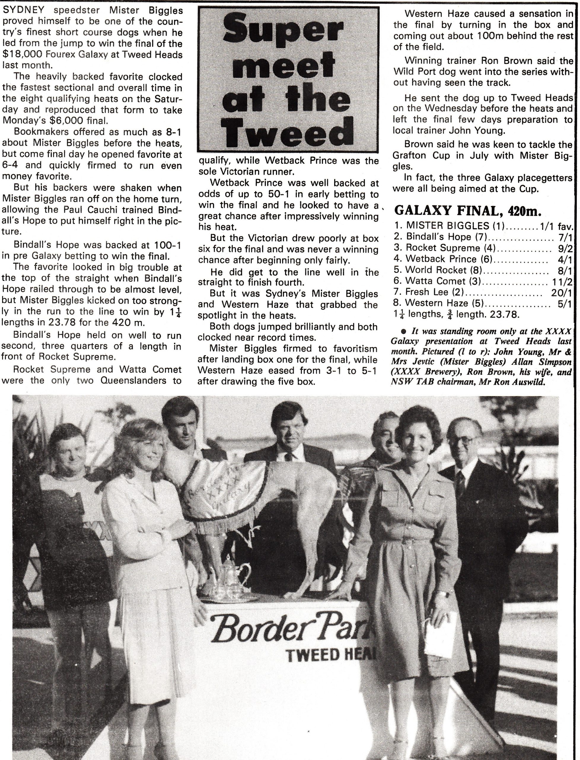 Doug Scott – Loved winning a race at the tweed in the nineties one of the few tracks that paid cash for prize money.