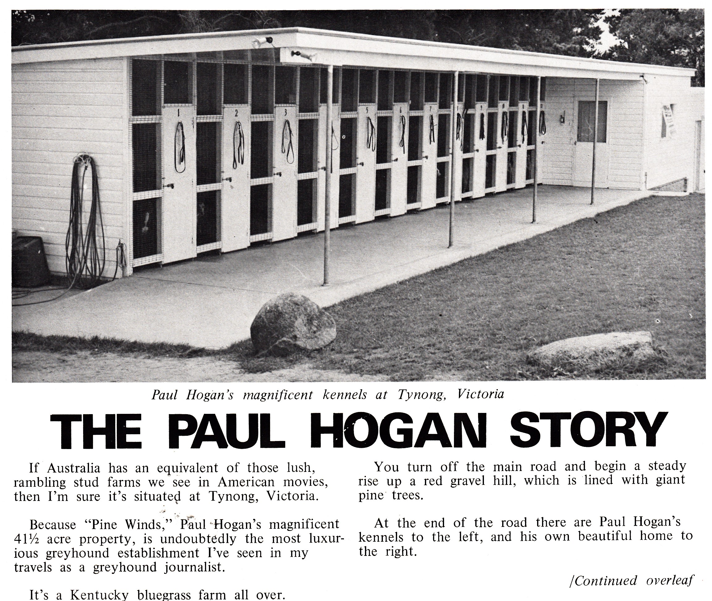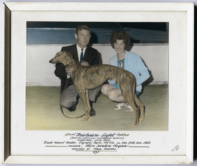 Paul Hogan is regarded as one of the greatest greyhound breeders of all-time. The Hogan breed – Dinah Jet, Fairbairn Lady, Fairbairn Queen, Cheltenham Lass and Delbairn Babe – was one of the sport’s strongest dam lines in the 1960s and 1970s. He was also Victoria’s first public trainer, operating Cheltenham Park for leviathan bookmaker Lal Scurrah. Before Cheltenham Park the Hogan’s lived in Fairbairn Street in Springvale my hometown. Paul a Victorian Hall of Fame inductee also served on the Sandown Board as a Director for 30 years. Paul and his wife Nola’s last propriety was at Tynong as highlighted in this article.