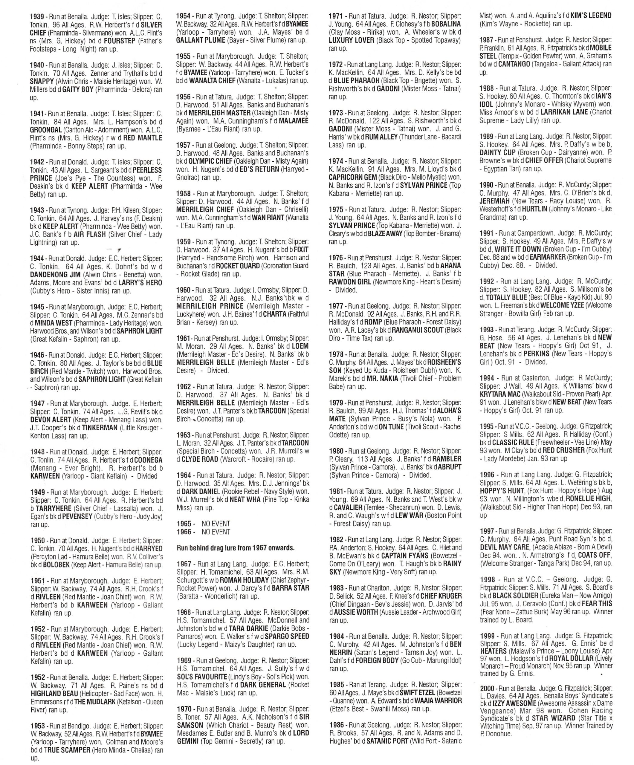 Here the detail results of the Victorian Waterloo Cup. The most interesting story referred to at the bottom of the page below can be found on a special post on Sam Bladon.