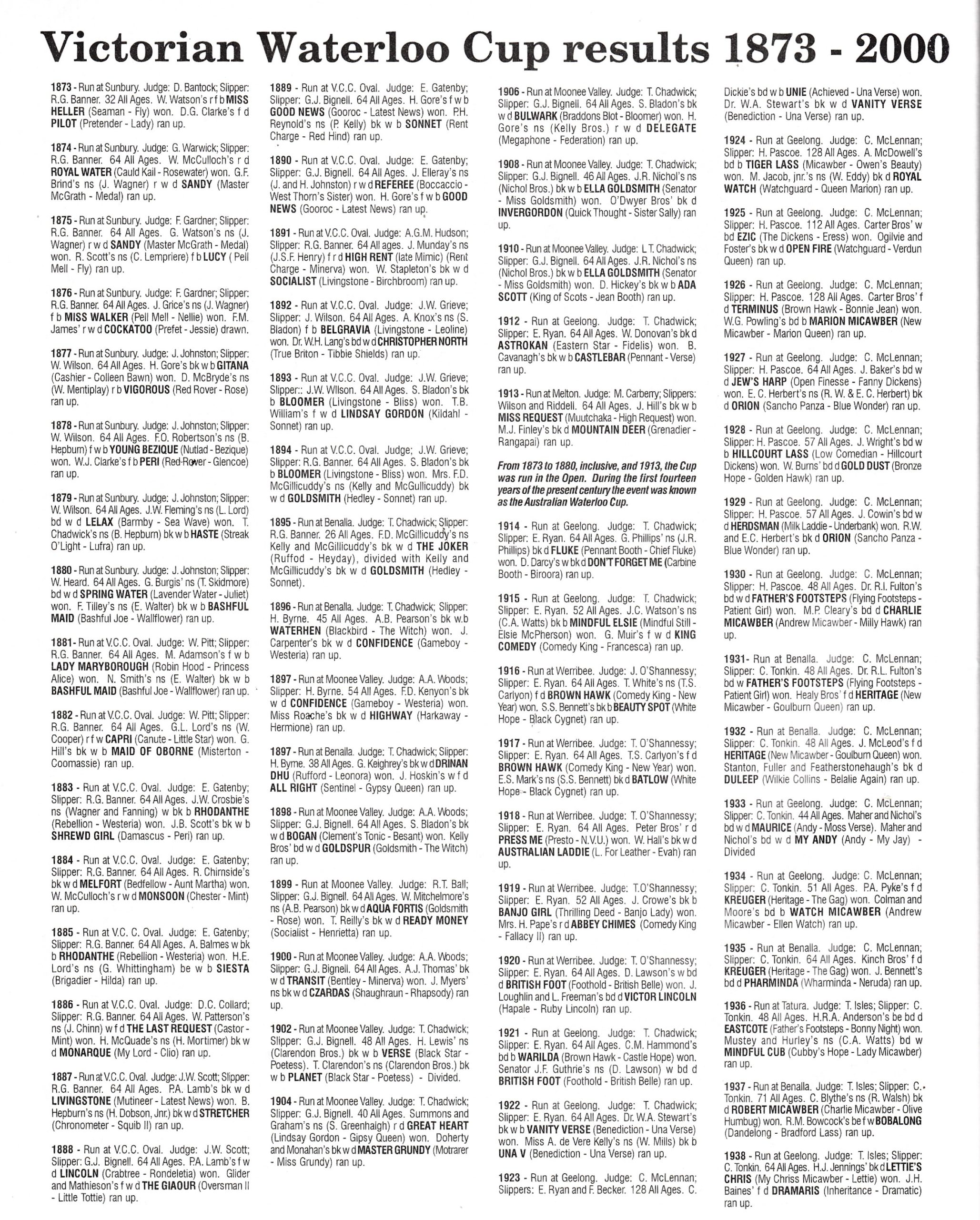 Here the detail results of the Victorian Waterloo Cup. The most interesting story referred to at the bottom of the page below can be found on a special post on Sam Bladon.