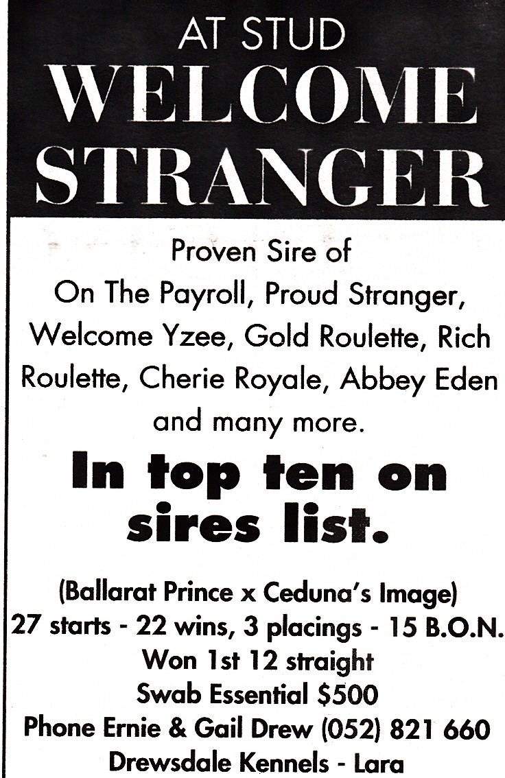 Welcome Stranger 23 January 2021 Neil Brown 80's 0 Brilliant sprinter Welcome Stranger. Jackie Greenough – “Boofy”