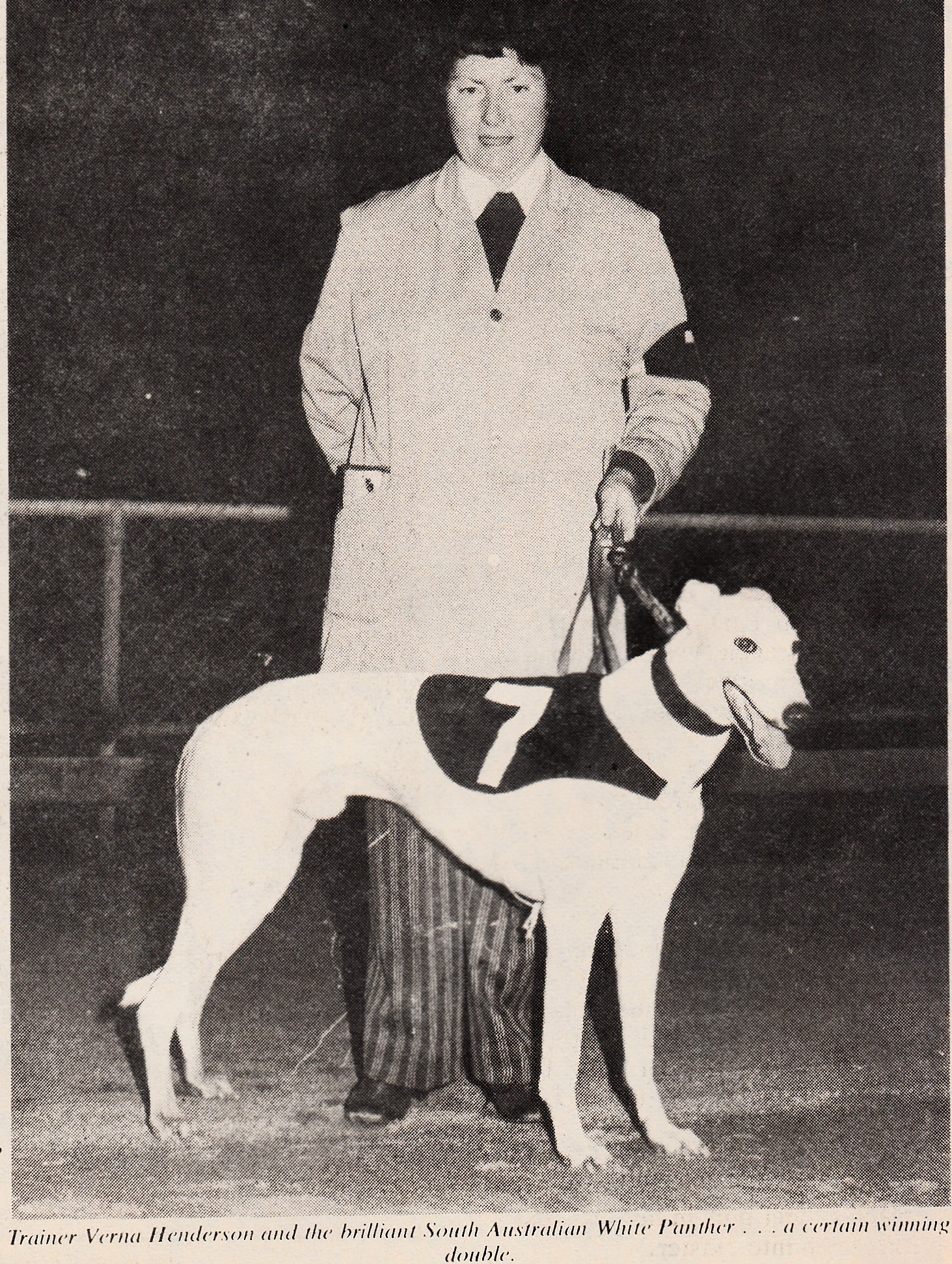 John Stephens sent this me for Gary Smith White Panther winning at Olympic Park in 1979 a heat of the Maturity. Plus a whole range of other stories about the champ including an extract from Ray Fewings book Chasing A Dream which explains White Panther extraordinary breeding.