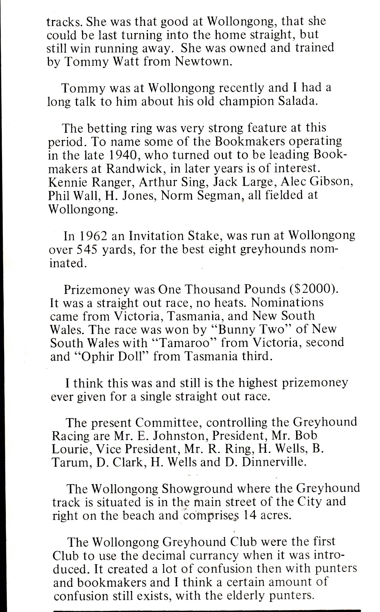 Tony Cooper– Raced a dog called Futures Fashion there back in 1967. Finished 3rd.