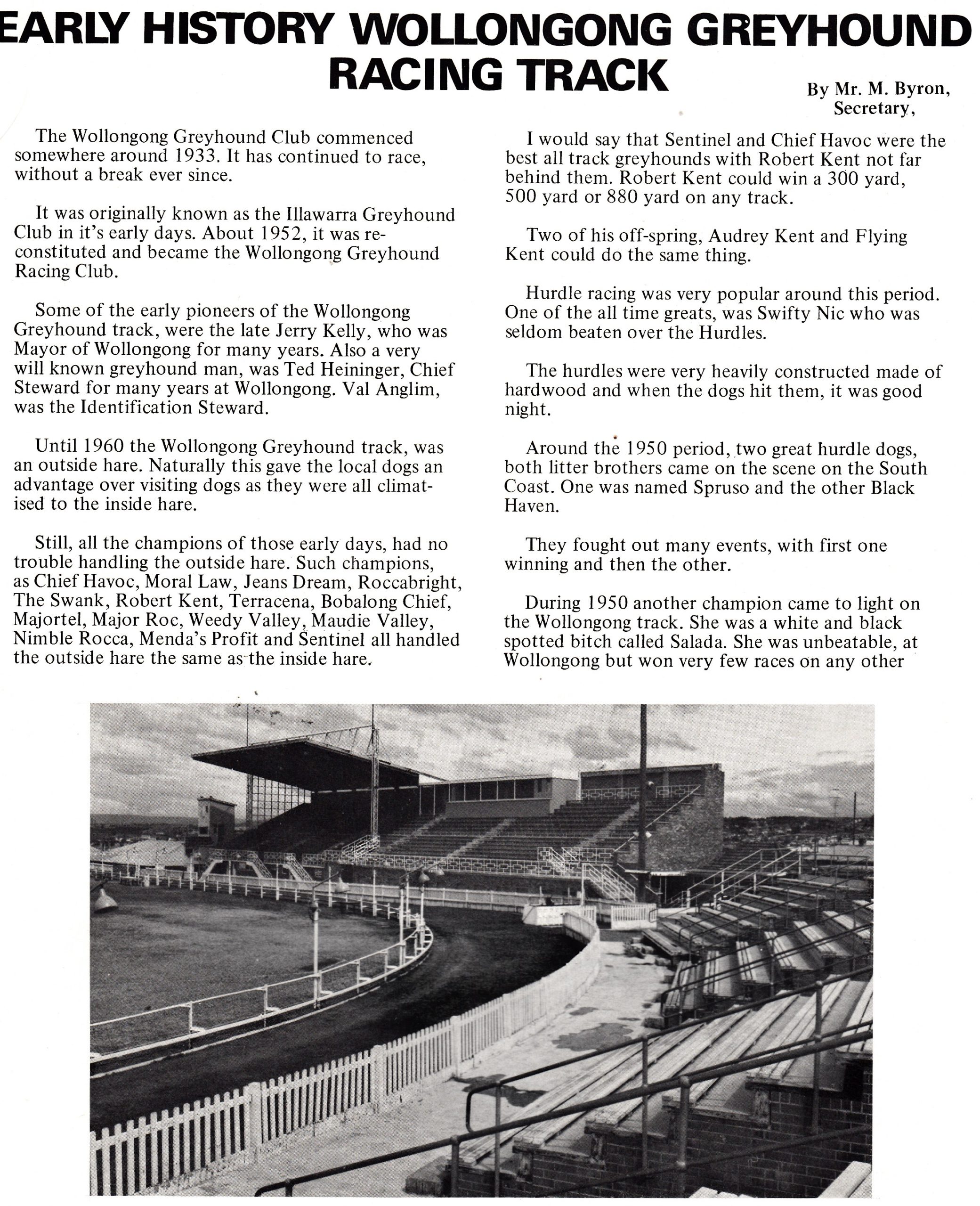 Jeff Holland– Other great trainers who raced there were Trevor Black(shy deena), Winnie Waters(nimble twinkle), George Gram(Mrs Robinson), Clyde Keft(happy endo), Kevin Lewry(paso fashion), Joe Buckley(adventurist), My favourite dog there was Spot The Star, tremendous railer, but Mocacindy was the best I saw, she was Incredible.